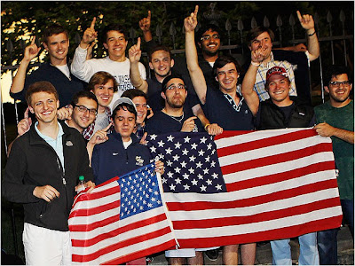 Students gather at the fence on the north side of the White House and sing the Star Spangled Banner upon hearing the news May 1 that Osama bin Laden had been killed.